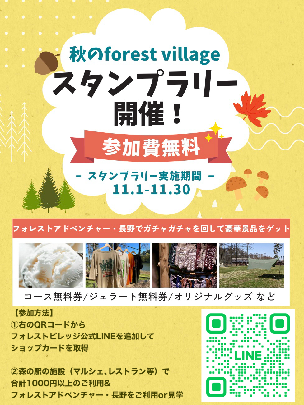 フォレストアドベンチャーコース無料券など豪華景品も盛りだくさんとなっております。